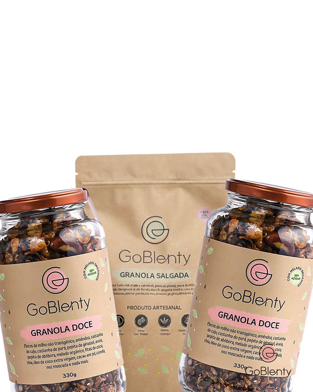 2 Granolas doce 330g e 1 Granolas salgada refil 660g.
